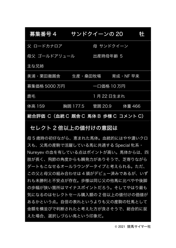 先日noteで販売しました、シルク募集馬評価レポート(関東編関西編)のうち、1次募集で満口にならなかった5頭の評価レポートを掲載します。